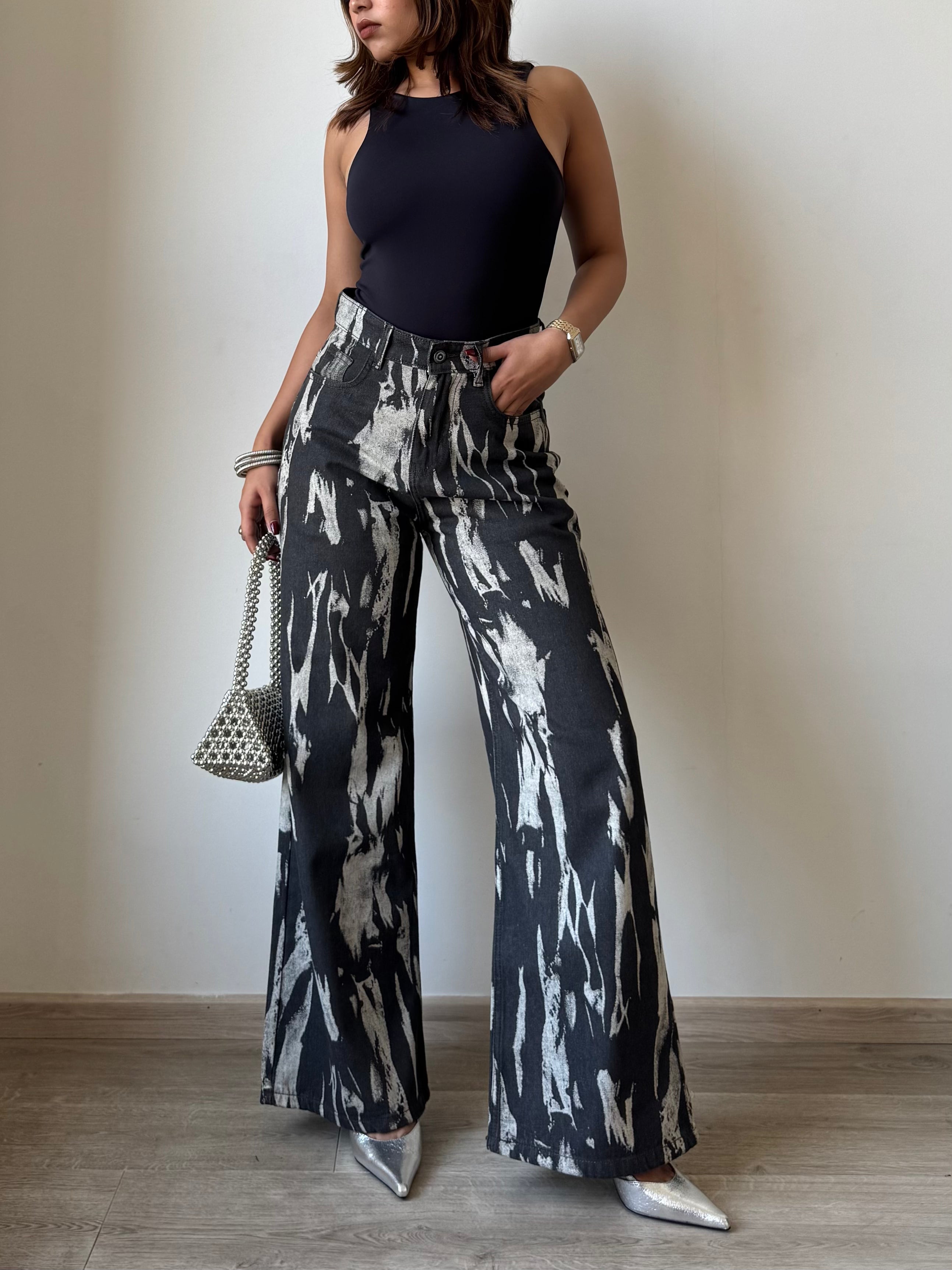 Lunar Grey Raw Waist Baggy Wide Leg Cargo Jeans